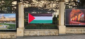 همچنین تصاویری در خصوص جنایات رژیم صهیونیستی در نوار غزه و کشتار کودکان فلسطینی نیز در ورودی این سفارت نصب شد.